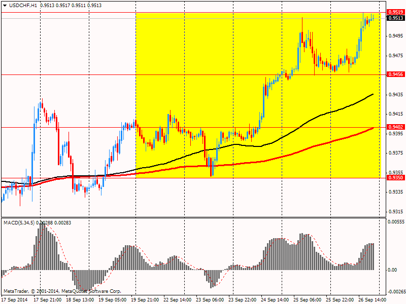Швейцарский франк существенно подешевел против американской валюты, оказавшись вблизи максимума 15 июля 2013 года. На ход торгов повлияли данные, показавшие, что индикатор потребительской активности снизился до 1,35 с 1,67 в июле. Снижение было под влиянием всех суб-показателей. Регистрации новых автомобилей резко упали - на 5,8 процента годовых. Суб-индикатор розничной деловой активности, отслеживаемый KOF, упал до 2 пунктов с 11, поставив его ниже долгосрочного среднего 6,2 пунктов в первый раз за четыре месяца. Кроме того, квартальные данные по ВВП показали более слабый рост частного потребления второй квартал подряд. Экономисты UBS предполагают, что частное потребление будет играть лишь умеренную роль в стимулировании роста в этом году. После слабых данных ВВП во втором квартале экономисты понизили прогноз роста ВВП на 2014 год - до 1,3 процента с 2,1 процента. В следующем году UBS прогнозирует 1,6% рост.