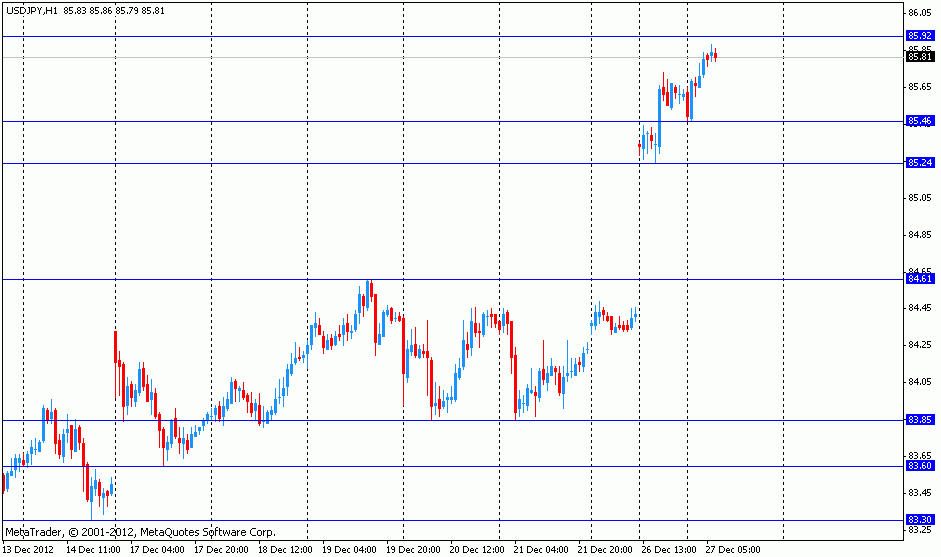 Внешний фон для американской сессии сложился в целом благоприятный - европейские фондовые биржи в большинстве своем продолжают отдыхать по случаю Рождества, а азиатские индексы окрепли на новостях о формировании нового правительства Японии. На посту премьер-министра был утвержден 58-летний лидер Либерально-демократической партии Синдзо Абэ, который несколько лет назад уже занимал кресло премьера. Абэ пообещал не потратить зря второй шанс и вывести экономику из затянувшегося кризиса.