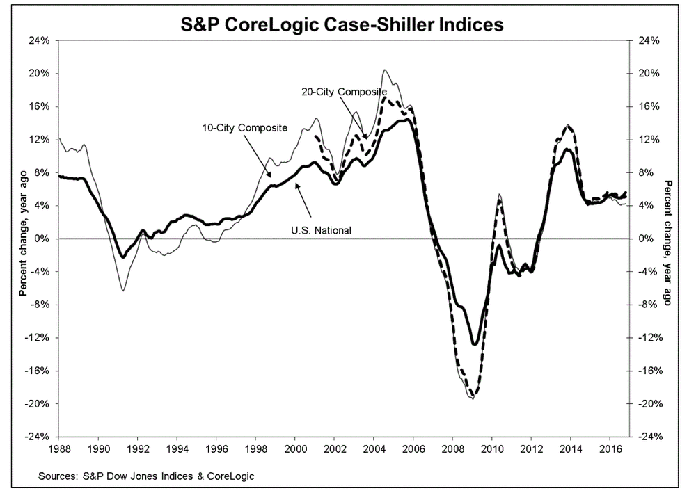 Как показал отчет S&P/Case-Shiller, цены на жилье в США продолжили повышаться в октябре, ускорив темпы относительно предыдущего месяца, и достигнув нового рекордного максимума. Согласно данным отчета, индекс цен на жилье, охватывающих всю страну, увеличился в октябре на 5.6% в годовом выражении, что последовало за приростом на 5.4% в сентябре.