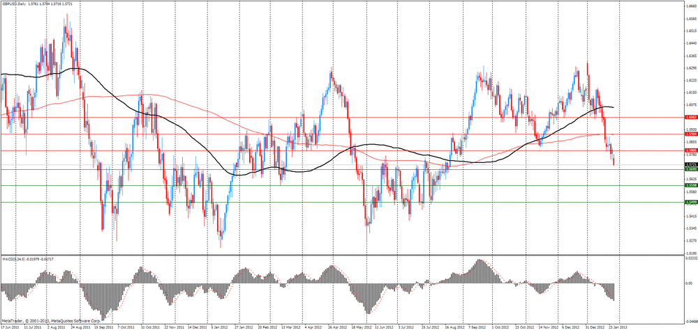 Фунт упал до самого минимального уровня за более чем 13 месяцев против евро, что было связано с публикацией данных от Hometrack, которые показали, что цены на дома в Англии и Уэльсе остались неизменными в декабре, после снижения в течение предыдущих шести месяцев. Также давление на валюты оказывал ранний отчет, согласно которому стало известно, что экономика Великобритании сократилась в последнем квартале 2012 года больше, чем прогнозировалось, снова вернувшись в рецессию.