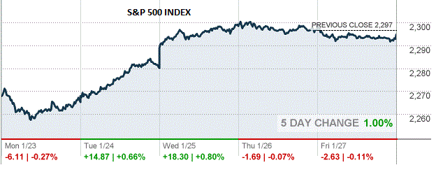 В отраслевом разрезе все сектора, кроме одного, индекса S&P за период 23-27 января включительно показали рост. Наибольший рост показал сектор конгломератов (+3,8%). Падение показал сектор коммунальных услуг (-0,3%).