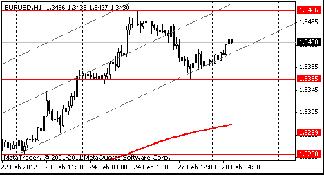 Евро укрепляется в преддверии проведения второй 3-летней операции LTRO - предоставление неограниченной ликвидности европейским банкам со стороны ЕЦБ сроком на 3 года со ставкой 1% годовых.