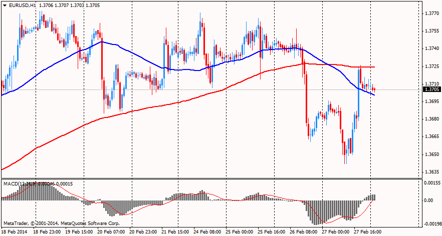 Курс евро резко вырос против доллара, что, в основном, было связано с выходом данных по еврозоне. Инфляция в странах еврозоны составила 0,8 процента третий месяц подряд в феврале. Это показала предварительная оценка Евростата, опубликованная в пятницу. Инфляция по прогнозам должна была замедлиться до 0,7 процента. Инфляция осталась ниже целевого Европейского центрального Банка "ниже, но близко к 2 процента" тринадцатый месяц подряд и находится в области четырехлетнего минимума.