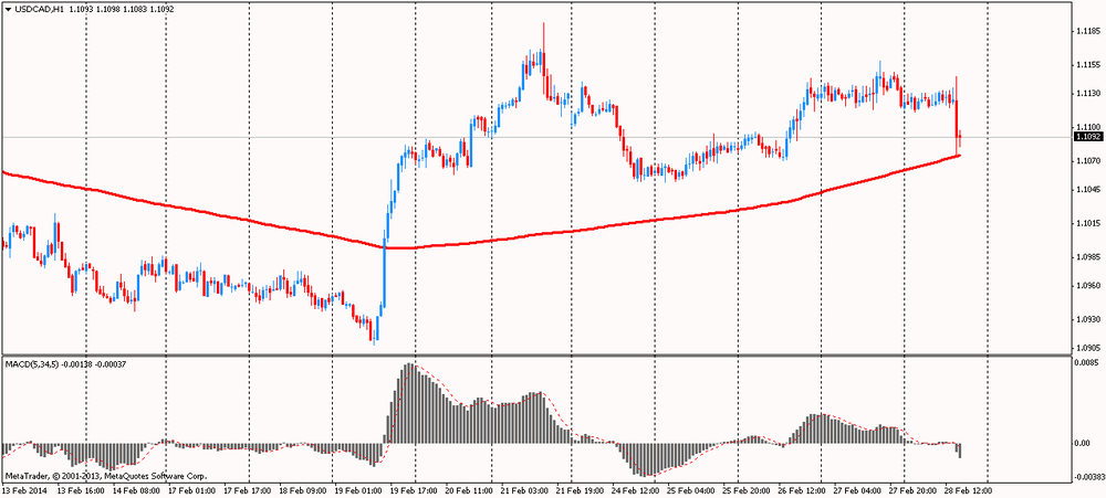 Вчера курс канадского доллара немного снизился против доллара США, что было связано с выходом данных по сальдо платежного баланса. Дефицит счета текущих операций Канады расширился в четвертом квартале 2013 года и стал четвертым по величине в истории - главным образом благодаря более высокому дефициту в торговле товарами. Дефицит текущего счета вырос с учетом сезонных колебаний до 16,01 млрд. канадских долларов($14,39 млрд.) по сравнению с пересмотренным дефицитом в третьем квартале на уровне 14,80 млрд. канадских долларов. Дефицит в предыдущем квартале первоначально оценивался в 15,47 млрд. канадских долларов. Экономисты ожидали дефицит в размере 16,5 млрд. канадских долларов.