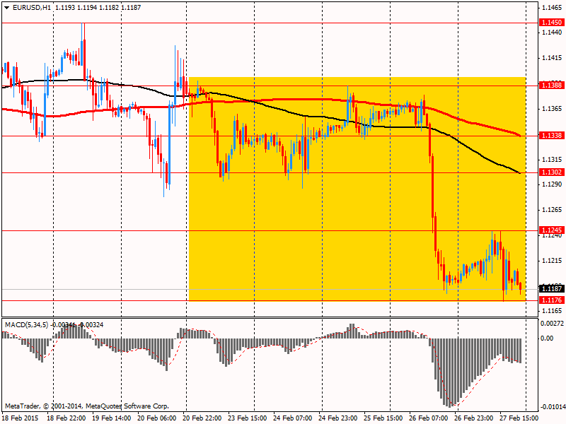 В среду доллар немного снизился против евро, так как второе выступление Йеллен не смогло внести ясность в прогноз по политике ФРС. Йеллен повторила вводную часть вчерашнего выступления, из которого ясно, что сроки повышения ставки будут зависеть от статистики. Незначительное влияние также оказали данные по США. Как стало известно, продажи новостроек слегка снизились в январе, но в целом темпы оставались рядом с шестилетним максимумом. Продажи вновь построенных односемейных домов снизились на 0,2% по сравнению с месяцем ранее и с учетом сезонных колебаний достигли годового уровня 481 000. Экономисты ожидали, что продажи сократятся до 477 000. Цифры за предыдущий месяц были пересмотрены до уровня 482 000 от первоначальной величины 481 000.