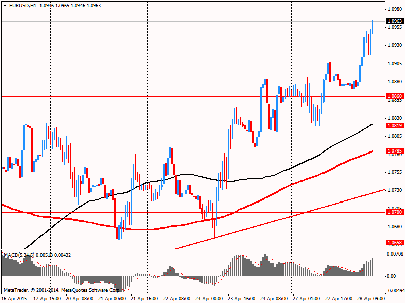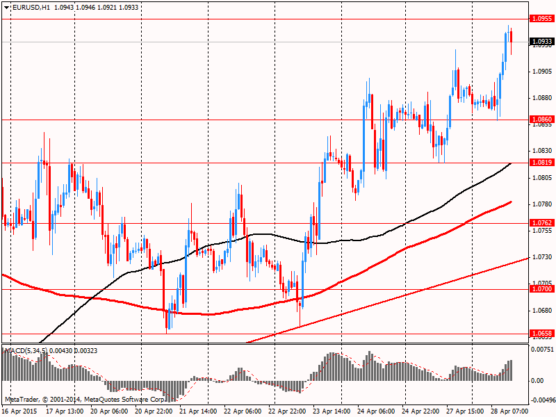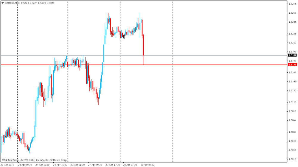 Фунт резко снизился против доллара, но затем вернул все ранее утраченные позиции. Незначительное давление на фунт оказали данные по ВВП. Предварительные данные от Управления национальной статистики показали: в период с января по март валовой внутренний продукт вырос на 0,3 процента по сравнению с повышением на 0,6 процента за последние три месяца 2014 года. Последний темп прироста оказался самым медленным с четвертого квартала 2012 года. Эксперты ожидали, что ВВП увеличился на 0,7 процента. Однако, стоит подчеркнуть, что предварительное чтение по ВВП состоит лишь из тех данных, которые доступны на текущее время, по этому цифры часто пересматриваются с учетом новой статистики. Между тем, в отчете сообщалось, что в годовом выражении британская экономика выросла на 2,4 процента в первом квартале против +3,0 процента за предыдущие три месяца. Аналитики прогнозировали расширение на 2,82 процента. Также в Управлении национальной статистики сообщили, что квартальный рост в секторе услуг Великобритании замедлился до 0,5 процента с 0,9 процента в период с октября по декабрь, что было связано с самым слабым ростом в секторе бизнес-услуг и финансов с конца 2010 года. По итогам февраля сектор услуг вырос на 0,3 после сокращения на 0,2 процента в январе. Между тем, объем промышленного производства сократился незначительно в первом квартале, а сектор строительства зафиксировал снижение на 1,6 процента.