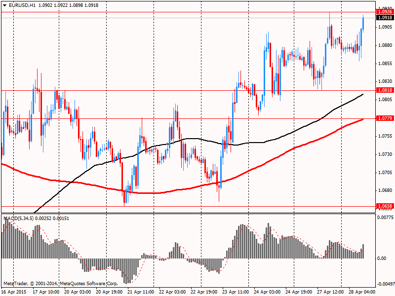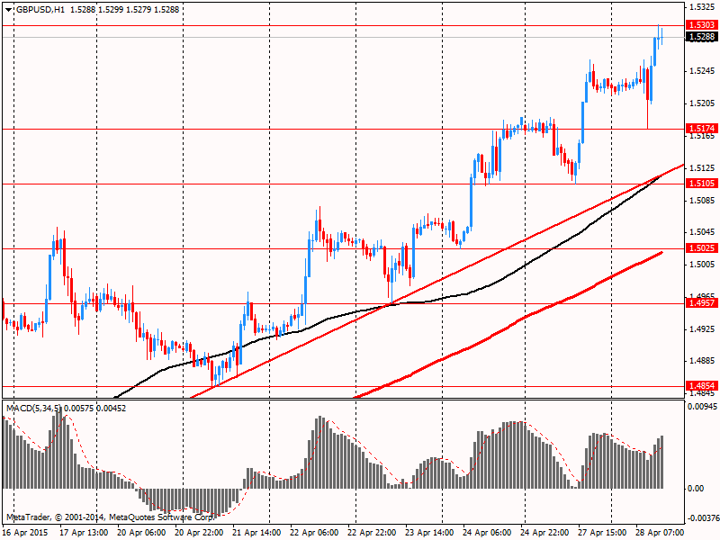 Фунт ранее снизился против американской валюты, что связано с ожиданиями публикации отчета по ВВП Британии за 1-й квартал. Ожидается, что он отразит рост экономики в начале года на 0,7% против 0.6% в 4 квартале. Небольшое влияние также оказали сегодняшний данные от CBI, которые отразили признаки ухудшения перспектив промышленного сектора страны. Баланс делового оптимизма вышел на отметке 3, что стало минимальным результатом с января 2013 г. Квартальный баланс производства за последние 3 месяца также оказался худшим с января 2013 года (+4).