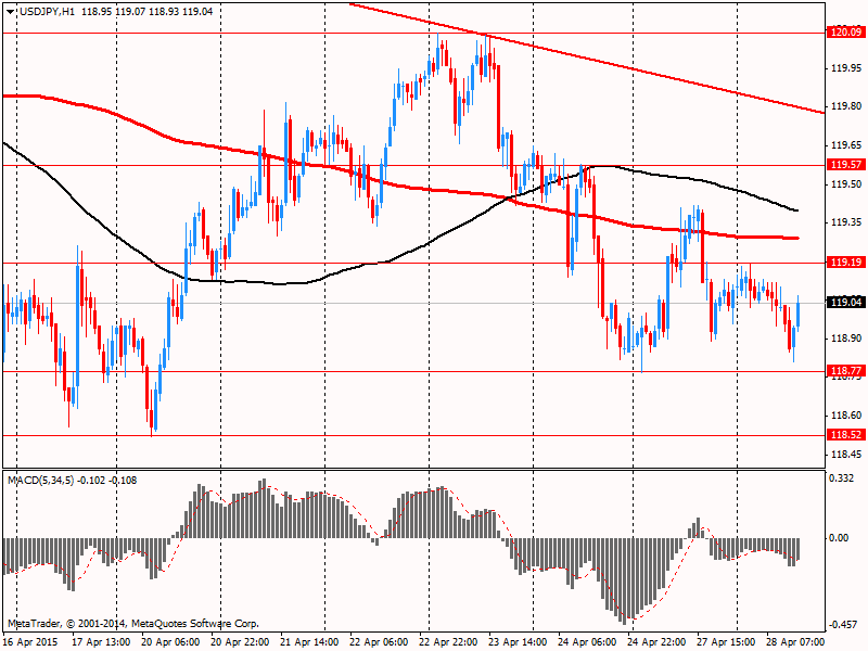 Иена подешевела против доллара США, преодолев отметку Y119.00, что связано с решением агентства Fitch понизить долгосрочный рейтинг дефолта эмитента в иностранной и местной валюте Японии до уровня А от А+. Кредитный рейтинг выпуска приоритетных необеспеченных иностранных и местных валютных облигаций также был понижен от А до А+. Прогноз по долгосрочному рейтингу дефолта эмитента остался стабильным. Рейтинг кредитного потолка понижен до АА от АА+, а краткосрочный рейтинг дефолта эмитента в иностранной валюте понижен до F1 от F+. В качестве основной причины агентство указало высокий и продолжающий расти уровень госдолга. По оценкам Fitch, показатель долга достигнет к концу 2015 г. 244% от ВВП. Тем временем прогноз по росту в 2015 г. был понижен до 1.3% от мартовской оценки 1.5%.