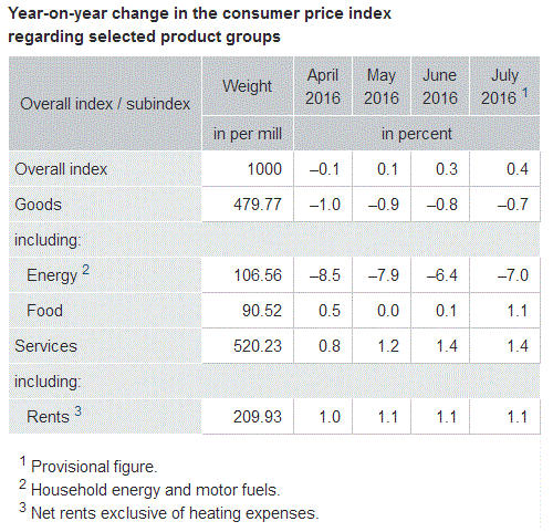 12:00 Германия Индекс потребительских цен, г/г (предварительные данные) Июль 0.3% 0.3%