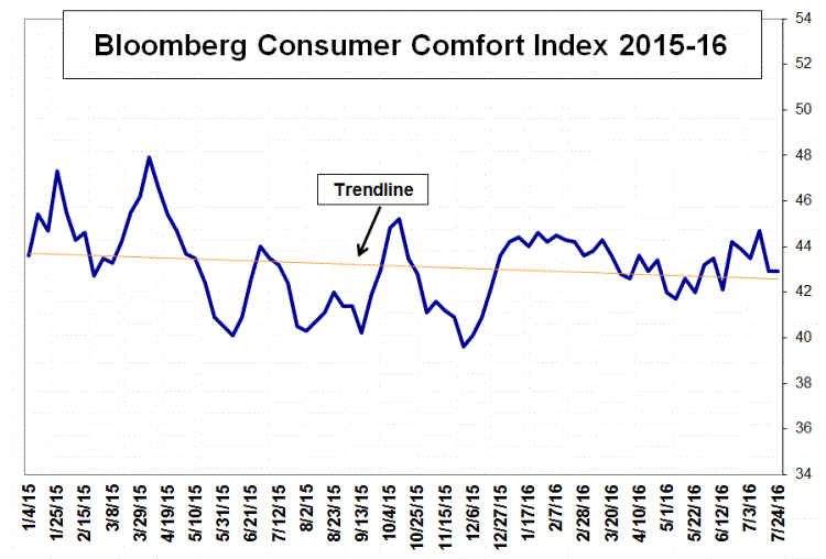 Согласно опубликованным в четверг данным Еврокомиссии, индекс настроений в экономике Великобритании резко понизился, до 102,6 в июле со 107,0 в июне. Июльское значение - минимальное с июня 2013 года, но оно превышает средний уровень 100,0, указывая на то, что компании и потребители относительно оптимистично относятся к своим перспективам. Еще дальше индекс находится от минимумов времен финансового кризиса. В марте 2009 года он достигал 64,3.