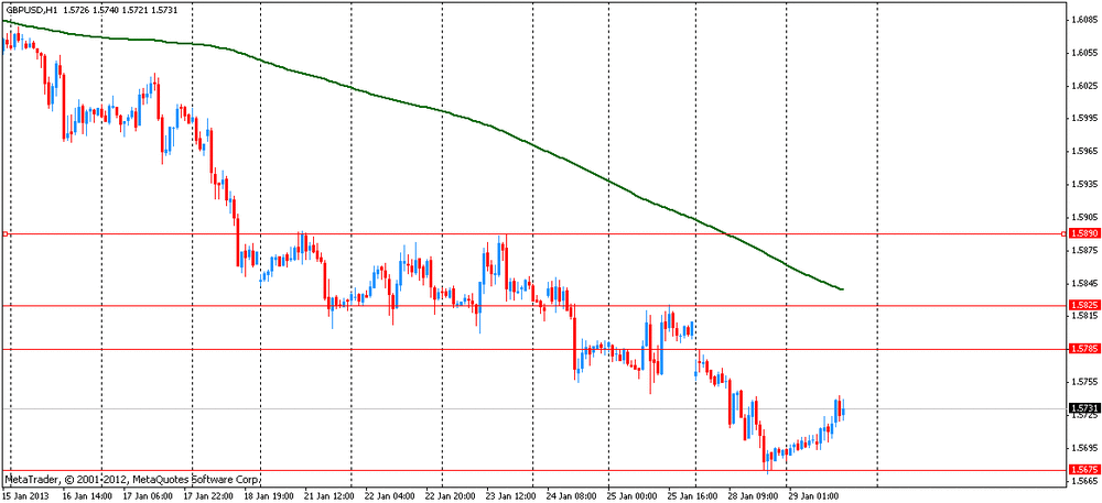 Фунт упал до самого минимального уровня за более чем 13 месяцев против евро, что было связано с публикацией данных от Hometrack, которые показали, что цены на дома в Англии и Уэльсе остались неизменными в декабре, после снижения в течение предыдущих шести месяцев. Также давление на валюты оказывал ранний отчет, согласно которому стало известно, что экономика Великобритании сократилась в последнем квартале 2012 года больше, чем прогнозировалось, снова вернувшись в рецессию.