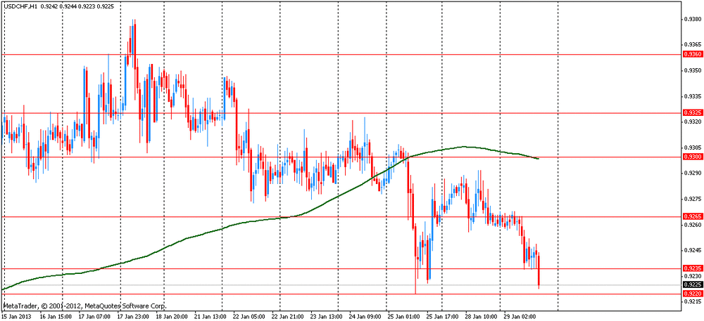 В среду Швейцария в 07:00 GMT опубликует индикатор потребительской активности от UBS за декабрь, в 08:00 GMT - индекс ведущих экономических индикаторов от KOF за январь. В 09:30 GMT в Британии выйдет объем чистых займов частным лицам, количество одобренных заявлений на получение ипотечного кредита за декабрь. В США в 13:15 GMT выйдет изменение числа занятых от ADP, в 13:30 GMT - изменение объема ВВП за квартал, ценовой индекс ВВП, индекс личных потребительских расходов, основной индекс личных потребительских расходов за 4 квартал, в 15:30 GMT - данные по запасам сырой нефти от министерства энергетики. В 19:15 GMT состоится публикация решения FOMC по основной процентной ставке и будет сделано сопроводительное заявление FOMC. В 20:00 GMT будет опубликовано решение Резервного Банка Новой Зеландии по основной процентной ставке и будет сделано сопроводительное заявление Резервного Банка Новой Зеландии. В 23:50 GMT Япония опубликует предварительные данные по объему промышленного производства за декабрь.