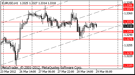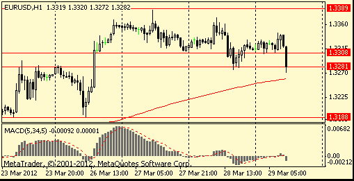 Евро упал с почти одно-месячного максимума против доллара после того, как индекс экономического доверия в регионе неожиданно снизился в марте. Еврокомиссия сообщила в четверг, что индекс потребительского и предпринимательского доверия к экономике еврозоны (ESI) в марте текущего года снизился на 0,1 пункта по сравнению с пересмотренным показателем февраля — до 94,4 пункта. Показатель февраля в 94,4 пункта был пересмотрен в сторону повышения — до 94,5 пункта. Таким образом, опубликованные данные оказались хуже прогнозов. Аналитики полагали, что индекс вырос до 94,5 пункта с непересмотренного февральского показателя. В то же время падение котировок европейской валюты ограничивает статистика по рынку труда Германии. Уровень безработицы в стране в марте сократился на 0,2 процентного пункта по сравнению с февралем и составил 7,2%. Число безработных в стране уменьшилось на 82 тысячи человек — до 3,028 миллиона человек.