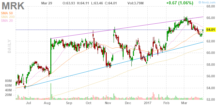 На текущий момент акции Merck (MRK) котируются по $64,01 (+1,06%)