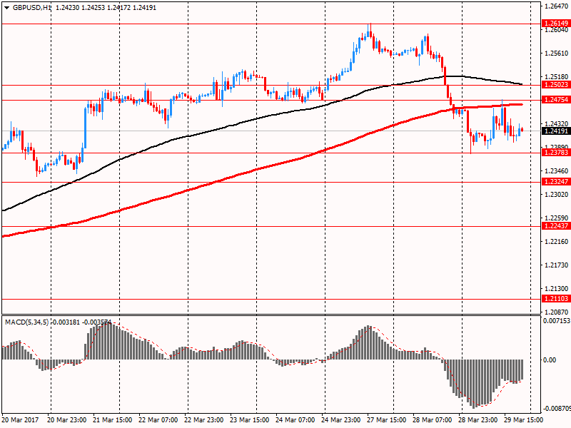 Британский фунт торговался смешано против доллара США, реагируя на официальное начало процесса Брекзита. Сегодня Британия официально уведомила ЕС о своем намерении покинуть ЕС - премьер-министр Тереза Мэй направила письмо председателю Совета Европы Туску. Письмо было подписано Мэй вечером 28 марта, его доставил в Брюссель посол Великобритании в ЕС Тим Барроу. В нем Лондон сообщает, что вводит в действие статью 50 Договора о ЕC. Предполагается, что процесс выхода страны из ЕС займет два года. Инвесторы ожидают начала официальных переговоров о Брекзите в течение нескольких недель. Между тем, канцлер Германии Меркель сообщила, что переговоры, касающиеся условий выхода Британии из ЕС, должны быть завершены до начала обсуждений будущих торговых отношений. "В ходе переговоров мы сначала должны прояснить, как расторгнуть существующие отношения, и затем мы начнет обсуждение будущих договоренностей", - сказала Меркель. Тем временем, Мэй сообщила, что Британия хочет глубокого особого партнерства с ЕС. "Необходимо согласовать условия будущего партнерства наряду с условиями выхода из ЕС. Неспособность достичь соглашения ослабит сотрудничество, направленное на борьбу с преступностью и терроризмом", - указала Мэй.