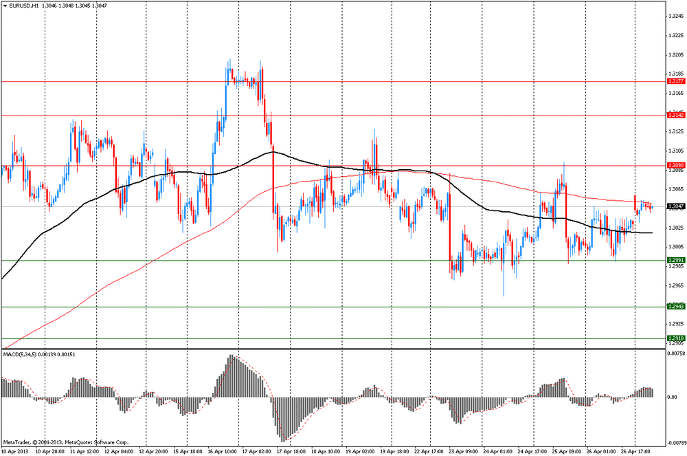 Поддерживают рост фьючерсов также ожидания новых мер от ЕЦБ, направленных на стимулирование роста европейской экономики, а также уверенность в том, что ФРС в ближайшее время не будет рассматривать вопрос снижения стимулирования американской экономики. Участники рынка ожидают, что на заседании ЕЦБ, которое состоится в четверг, 2 мая, будет принято решение о снижении ставки рефинансирования с 0,75% до 0,50%.