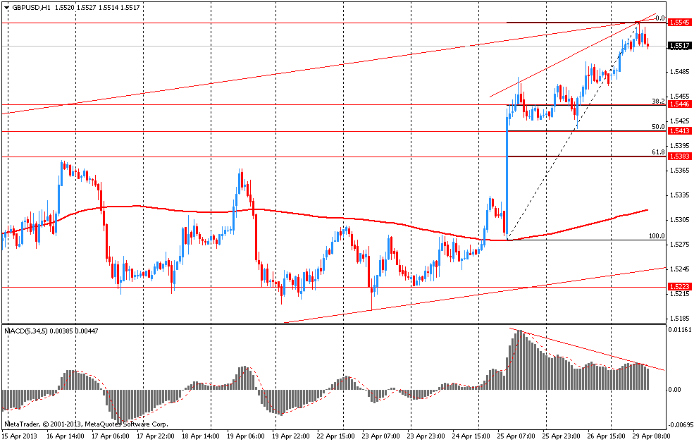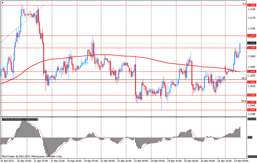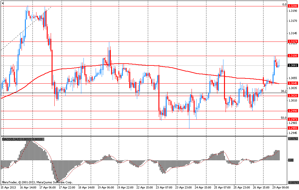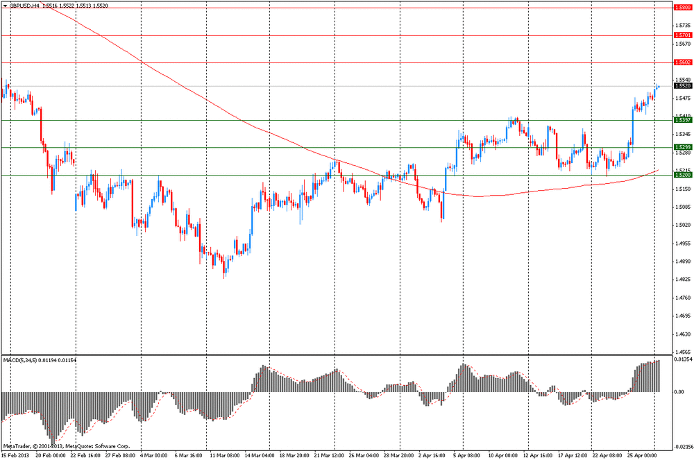 Фунт укрепился до 10-недельного максимума против доллара, поскольку отчет показал, что цены на жилье в Великобритании увеличились в этом месяце, повышая оптимизм в отношении того, что восстановление набирает обороты. Также росту валюты помогает правительственный отчет, который показал, что британская экономика избежала рецессии в прошлом квартале, понизив спекуляции о том, что Банк Англии повысит стимулирование. Заметим, что следующее заседание Банка Англии состоится уже 8-9 мая. Экономисты заявляют, что после того, как политики разделились в этом месяце во мнении о том, стоит ли увеличивать объем программы по покупке активов, на ближайшем заседании данные разногласия могут снизиться.