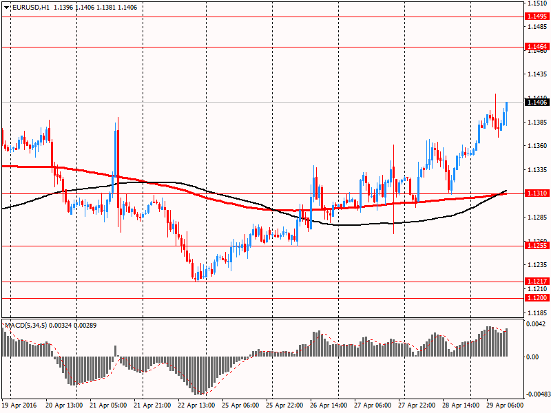 Ранее на рост евро также повлияла статистика по еврозоне. Предварительный отчет, представленный Евростат, показал, валовой внутренний продукт еврозоны вырос в 1-м квартале на 0,6 процента после повышения на 0,3 процента в четвертом квартале. Экономисты прогнозировали, что экономика расширится на 0,4 процента. В годовом исчислении рост ВВП оставался на уровне 1,6 процента, в то время как аналитики ожидали замедление до 1,5 процента. Кроме того, в Евростат сообщили, что потребительские цены в еврозоне упали в апреле на 0,2% после нулевого изменения в прошлом месяце. Эксперты ожидали, что цены снизятся лишь на 0,1%. Тем временем, базовый индекс потребительских цен, в котором не учитываются волатильные цены на энергию и продукты питания, вырос в апреле на 0,8%, что оказалось меньше ожиданий аналитиков (+0,9%). В марте данный показатель повысился на 1,0%. Еще один отчет показал, что в марте уровень безработицы в еврозоне уменьшился до 10,2% с 10,4% в феврале (пересмотрено с 10,3%). Последнее значение оказалось наименьшим с августа 2011 года. Эксперты ожидали, что уровень безработицы составит 10,3%. Среди 28 стран ЕС уровень безработицы в марте снизился до 8,8% (минимум с апреля 2009 года) с 8,9% в феврале.