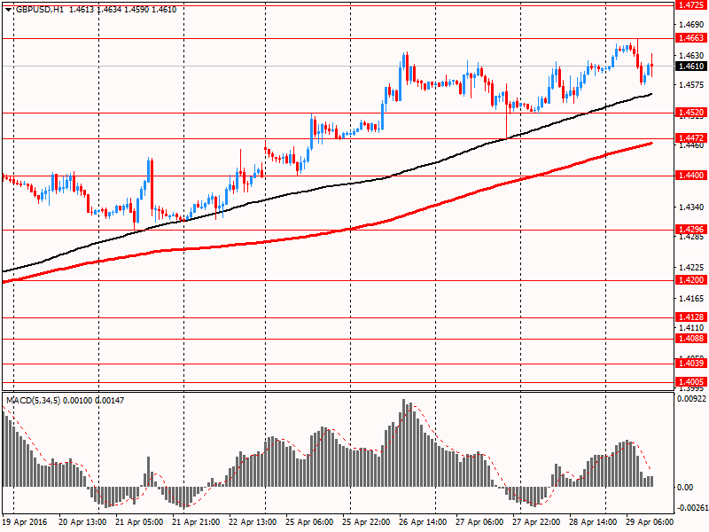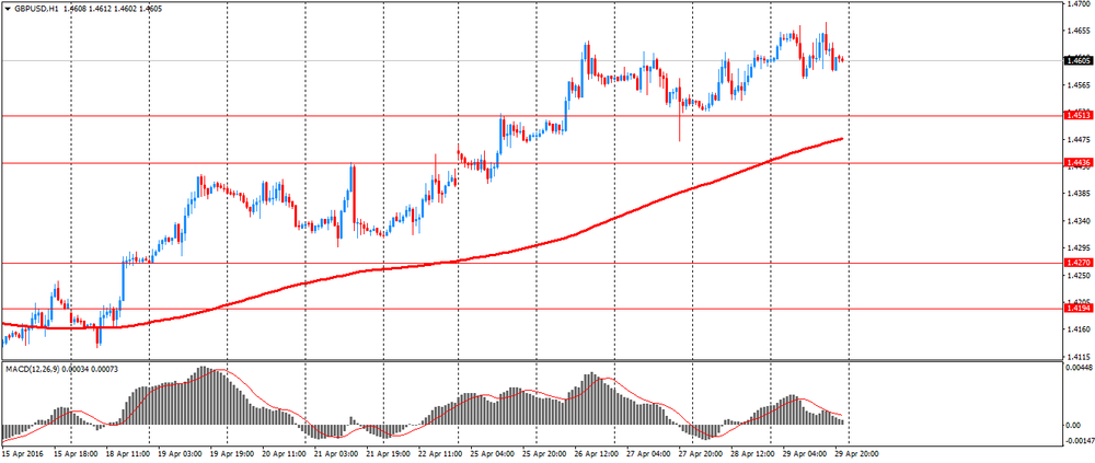 Поддержку фунту ранее в среду оказали данные по ВВП Британии, которые подтвердили ожидания экспертов. Предварительный отчет, опубликованный Управлением национальной статистики, показал, что экономика Британии продолжила расширится в первом квартале 2016 года, но продемонстрировала более медленные темпы, чем за предыдущие три месяца. Валовой внутренний продукт вырос на 0,4 процента по сравнению с четвертым кварталом 2015 года, когда было зафиксировано повышение на 0,6 процента. Последовательный темп роста совпал с ожиданиями экономистов. Объем производства в секторе услуг увеличился на 0,6 процента. Остальные три основные промышленные группы экономики зафиксировали снижение: производство сократилось на 0,4 процента, объемы строительства - на 0,9 процента, а сельское хозяйство - на 0,1 процента. В годовом исчислении валовой внутренний продукт вырос в первом квартале на 2,1 процента, немного быстрее, чем ожидали эксперты (+2 процента). Дальнейшее повышение фунта затруднил доклад Организации экономического сотрудничества и развития (ОЭСР). Вчера ОЭСР сообщила, что выход Британии из ЕС будет сильным негативным шоком для британской экономики. "Экономический рост в Великобритании уже ослаб по причине неопределенности относительно исхода референдума. Решение Британии выйти из ЕС также окажет влияние на экономики других стран", - пояснили в ОЭСР. Согласно расчетам ОЭСР, в случае выхода из ЕС ВВП Великобритании уменьшится на 3% к 2020 году и на 5% к 2030 году. Управляющий Банка Англии Марк Карни заявил, что резкое ослабление британского фунта против других валют в случае, если население Великобритании проголосует за выход страны из ЕС, может подстегнуть рост годовой инфляции. Тем не менее, в своем письме, направленном в парламент, Карни также отметил, что в рамках вышеуказанного сценария вероятно также замедление экономического роста и инфляции после проведения референдума. Вопрос о влиянии резкого снижения фунта был задан еще членом парламента Рэйчел Ривс в рамках заседания 9 марта. Карни подчеркнул, что Комитет по денежно-кредитной политике пока не делал никаких прогнозов по фунту в том случае, если британцы 23 июня проголосуют за выход страны из торгового блока. При этом, по его словам, ослабление национальной валюты на 20% - принятое за основной сценарий в парламенте - может повысить годовую инфляцию на 1,5 процентного пункта, отчасти за счет роста цен на импортные товары.
