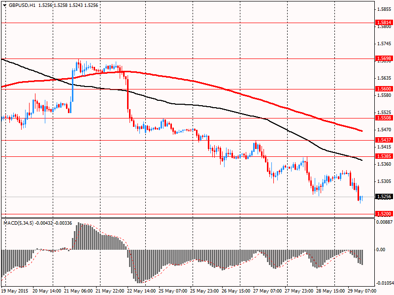 Фунт продолжил снижение против доллара США. Давление на британскую валюту продолжают оказывать вчерашние слабые данные по ВВП Британии. Напомним, в натуральном выражении ВВП увеличился на 0,3% в период между четвертым кварталом 2014 года и первым кварталом 2015 года. Стоит подчеркнуть, показатель оказался неотредактированным по сравнению с предыдущей оценкой ВВП, опубликованной 28 апреля. Аналитики ожидали, что экономика расширится на 0,4% против роста на 0,6% в четвертом квартале. По сравнению с первым кварталом 2014 года ВВП Британии (в натуральном выражении) увеличился на 2,4%, что также соответствовало предварительным данным, опубликованным ранее. Однако, эксперты прогнозировали расширение на 2,5% против роста на 3,0% в четвертом квартала. В УНС сказали, что бизнес-инвестиции выросли на 1,7 процента в течение первых трех месяцев года (максимум со второго квартала 2014 года) против прогноза экономистов +1,0 процента и снижения на 0,9 процента в конце 2014 года. Но торговля оказалась основным "тормозом" экономики, отняв 0,9 процентных пункта от квартального роста ВВП. Между тем, расходы домохозяйств выросли на 0,5 процента, немного замедлив темпы по сравнению с концом 2014 года.