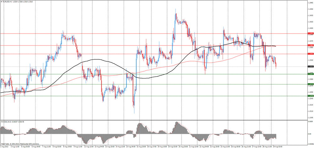 EUR/USD: в ходе азиатской сессии пара упала к $1.3310