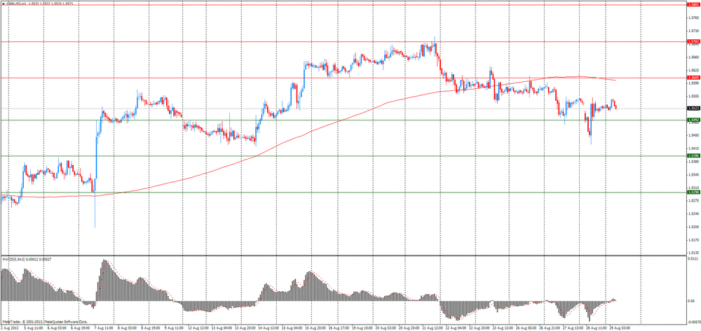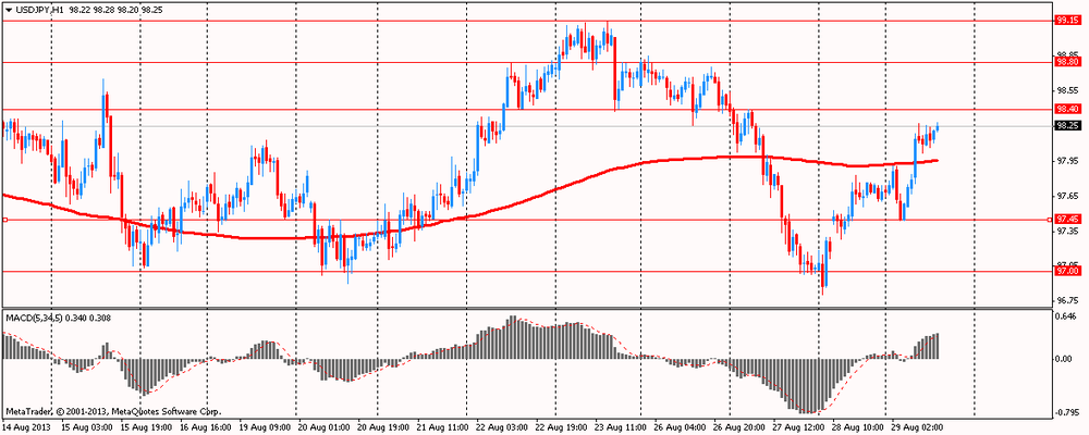 Доллар торгуется около четырех недельного максимума против корзины основных валют в преддверии сегодняшней публикации данных по росту экономики США. Ожидается, что цифры отчета превзойдут ожидания аналитиков и тем, самым побудят руководство ФРС приступить к сокращению объема программы QE3. Согласно средним оценкам экономистов, рост объема внутреннего валового продукта за второй квартал, вероятно, вырастит на 2,2% в годовом исчислении, по сравнению с первоначальным значением в 1,7%. Также сегодня в США будут опубликовано количество заявок на получения пособия по безработице. Напомним, что следующее заседание комитета по открытым рынкам состоится 17-18 сентября, где политики ЦБ решат дальнейшую судьбу стимулирующих программ Феда.
