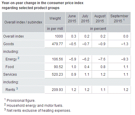 12:00 Германия Индекс потребительских цен, м/м (предварительные данные) Сентябрь 0.0% -0.1%