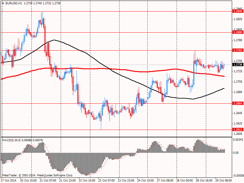 Падение доллара сдержал сильный отчет по потребительской уверенности в США. Данные, представленные Conference Board, показали: индекс потребительского доверия заметно улучшился в октябре, превысив при этом прогнозы экспертов. Согласно отчету, октябрьский показатель потребдоверия вырос до 94,5 пункта (1985 = 100) по сравнению с 89,0 в сентябре (пересмотрено с 86,0). Индекс текущей ситуации в сентябре повысился до 93,7 пункта с 93,0, а индекс ожиданий - увеличился до 95,0 с 86,4.