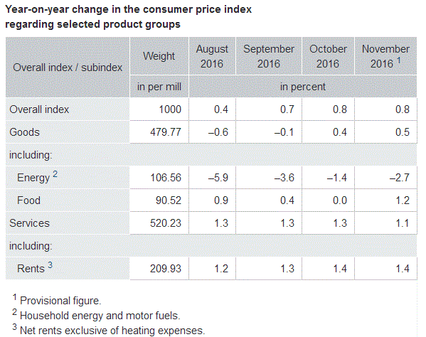 Потребительские цены выросли на 0,7 процента в годовом исчислении в ноябре, показав тот же темп роста, как и в октябре. Цены растут в течение трех месяцев подряд. Инфляция, согласно прогнозам, замедлится до 0,5 процента.