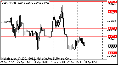 Сопротивление 2: Chf0.9095 (минимум азиатской сессии 27 апреля)