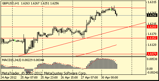 Во вторник рост фунта против доллара ограничили данные по заимствованиям госсектора Великобритании, которые в марте были выше, чем ожидалось, и достигли максимального уровня с ноября 2010 года. Тем не менее, заимствования все же соответствовали целевому уровню правительства на текущий финансовый год. В марте британский дефицит бюджета расширился сильнее прогнозов экономистов, став очередным подтверждением того, что Минфин Осборна столкнулся с серьезными трудностями в применении бюджетных мер. Недавно премьер-министр Кэмерон вновь упомянул о своей приверженности к сокращению дефицита бюджета, который по итогам прошлого финансового года достиг 8,3% от ВВП. Фунт в среду упал с семимесячного максимума против доллара после того, как правительственный отчет показал, что экономика Великобритании скатилась в рецессию, что оставляет возможность для Банка Англии расширить свои программы покупки активов. Согласно предварительной оценке, ВВП Великобритании в 1-м квартале 2012 года упал на 0,2% в квартальном исчислении при ожиданиях роста на 0,1%. Снижение ВВП в 1-м квартале текущего года является вторым подряд снижением показателя, что многими экономистами воспринимается как рецессия. Фунт в пятницу пробил психологическую отметку 1.6200 и уровень 1.6207 (максимум 9 сентября 2011), обновив 7-месячные максимумы против доллара. Росту фунта также способствовало заявление Royal Bank of Scotland. Этот британский банк заявил, что не ожидает от Банка Англии объявления о новых мерах количественного смягчения, несмотря на данные о рецессии в Великобритании, вышедшие на этой неделе.