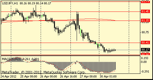 Доллар несет потери против иены, расширяя свое месячное снижение до 3,6%. Давление на американскую валюту оказывает рост ожиданий нового раунда количественного смягчения, учитывая более слабые данные по ВВП США за 1-й квартал, которые были опубликованы в пятницу, сегодняшние данные по индексу менеджеров по закупкам Чикаго и прогнозы по данным по занятости за апрель, которые будут представлены в пятницу.