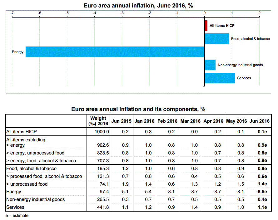 За исключением энергии и необработанной пищи, базовая инфляция составила 0,5 процента в июне, по сравнению с 0,6 процента в мае.