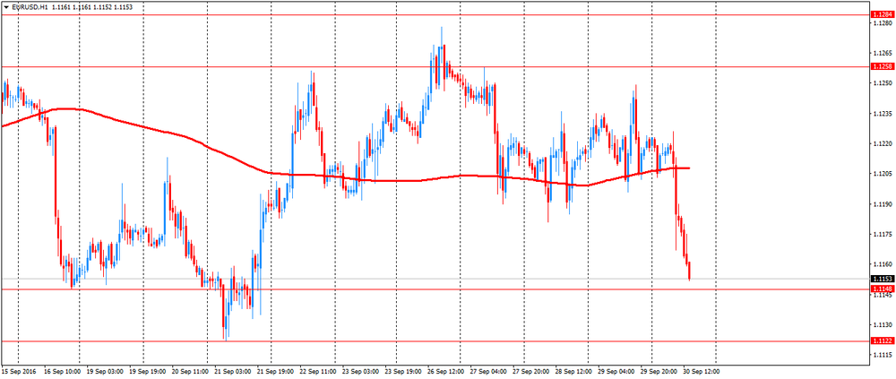 Доллар США заметно подешевел против евро, приблизившись до минимума 27 сентября, но вскоре вернулся до максимума сессии. Первоначально давление на американскую валюту оказали крайне слабые данные по рынку жилья США, которые нивелировали позитив от статистики по ВВП и рынку труда. Между тем, причиной восстановления доллара были технические факторы и ухудшившиеся рыночные настроения после новостей о Deutsche Bank. Агентство Bloomberg сообщило, что около 10 из 200 клиентов Deutsche Bank, которые проводят деривативные операции, вывели избыточные денежные средства из-за опасений по поводу сложившейся ситуации в банке. Влияние на доллар также оказывали противоречивые комментарии от представителей ФРС Локхарта, Пауэлла и Джордж, которые не смогли прояснить перспективы повышения ставок. Согласно рынку фьючерсов, вероятность ужесточения денежно-кредитной политики ФРС в декабре составляет 56,4% против 53,1% днем ранее.