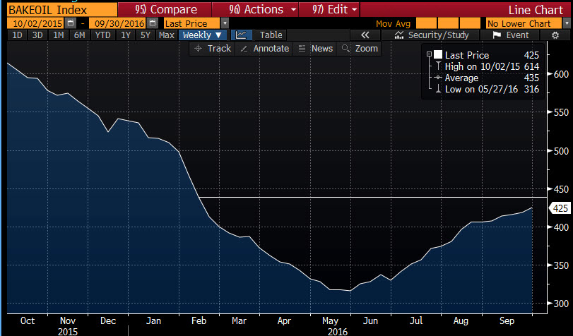 Напомним, по итогам рабочей недели, завершившейся 23 сентября, общее число буровых установок в США выросло на 5 единиц, до 511 единиц. Количество нефтяных буровых установок выросло на 2 единицы, до 418 штук. Число газодобывающих установок выросло на 3 единицы, и составило 92 единицы.