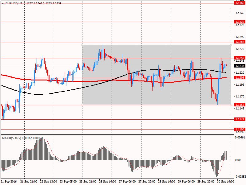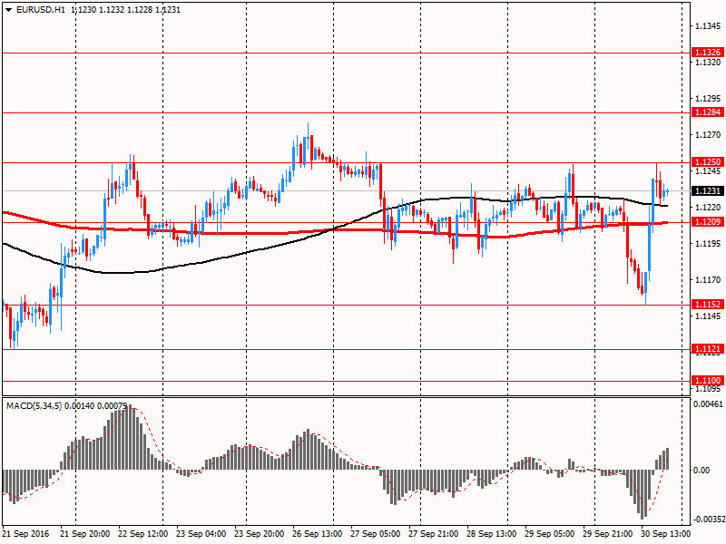 В пятницу евро существенно подорожал против доллара США, отыграв все ранее утраченные позиции, и приблизившись до максимума 27 сентября. Причиной такой динамики было снижение обеспокоенности инвесторов по поводу финансового состояния крупнейшего немецкого банка Deutsche Bank. Определенную поддержку паре также оказали слабые данные по потребительским расходам США. Министерство торговли сообщило, что потребительские расходы, на долю которых приходится более двух третей экономики США, не изменились в прошлом месяце с учетом инфляции. Аналитики ожидали, что расходы вырастут на 0,1 процента. Личные доходы выросли на 0,2 процента в августе, в соответствии с ожиданиями. Вместе с тем, дальнейшему повышению пары помешала публикация индекса менеджеров по закупкам Чикаго и индекса потребительских настроений от Reuters/Michigan.