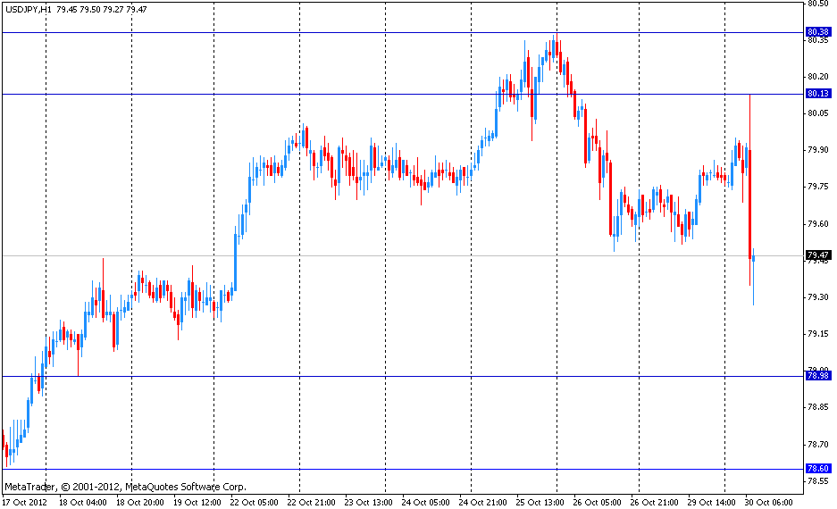 В это же время спрос на иену как актив-убежище увеличилась на фоне того, что крупнейший тропический шторм «Сэнди» достиг американского северо-восточного побережья.