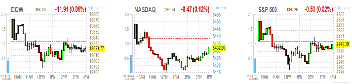 Основные фондовые индексы Уолл-стрит ниже нуля в последний торговый день 2016 года на фоне потерь в большинстве секторов, но все еще на пути к записи огромного роста за год.