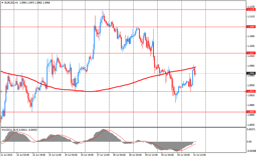 Доллар значительно подорожал против евро, достигнув при этом уровня $1.0900, чему способствовали данные по ВВП США. Министерство торговли заявило, что экономический рост США ускорился во втором квартале, так как подъем потребительских расходов компенсировал снижение из-за слабых деловых расходов на оборудование, предполагая устойчивый импульс, который может приблизить Федеральную резервную систему к повышению процентных ставок в этом году. Валовой внутренний продукт расширился в годовом исчислении на 2,3 процента. В первом квартале ВВП, как ранее сообщалось, сократился на 0,2 процента. Однако этот показатель был пересмотрен до роста на 0,6 процента. Пересмотр роста в первом квартале отразил шаги, предпринятые правительством для уточнения сезонной корректировки для некоторых компонентов ВВП, о которых экономисты говорят, что они имеют остаточную сезонность в данных, а также с учетом новых исходных данных. Мера частного внутреннего спроса, которая исключает торговые запасы и государственные расходы, увеличилась на 2,5 процента после роста на 2,0 процента в начале года. Бизнес-расходы упали на 1,6 процента после снижения на 7,4 процента в начале года. Расходы на оборудование упали на 4,1 процента. Расходы на геологоразведочные работы и добычу снизились на 68,2 процентов, показав наибольшее снижение со второго квартала 1986 года. Эта категория сократилась на 44,5 процента в первом квартале. Но есть признаки того, что снижение цен на энергоносители возможно близится к концу. Данные в прошлую пятницу показали, что энергетические компании добавил 21 нефтяные вышки на прошлой неделе, отметив третье увеличение за последние 33 недель. Экспорт вырос во втором квартале, несмотря на сильный доллар, в то время как импорт вырос умеренно. Это определило меньший дефицит торгового баланса, который добавил 0,13 процентного пункта к росту ВВП. Индекс цен расходов на личное потребление вырос на 2,2 процента, это самый быстрый рост с первого квартала 2012 года, после падения на 1,9 процента в начале года. Без учета продуктов питания и энергоносителей, цены выросли на 1,8 процента.
