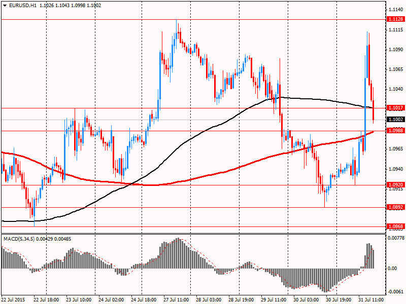 В пятницу евро существенно подорожал против доллара, ненадолго поднявшись выше уровня $1.1100, что было вызвано публикацией слабых данных по стоимости рабочей силы в США. Позднее пара снова опустилась ниже $1.1000, причиной чему была коррекция позиций в конце месяца. Эксперты заявили, что последние данные усилили опасения по поводу отсрочки первого повышения ставки ФРС. Напомним, Министерство труда сообщило, что по итогам 2-го квартала темпы роста заработных плат в США замедлились максимально с начала ведения исследований, тогда как эксперты прогнозировали, что улучшение ситуации на рынке труда положительным образом отразится на динамике оплаты труда. Прирост во 2 квартале на 0,2% оказался минимальным с 1982 года. В 1-м квартале показатель находился на отметке 0,7%. Экономисты ожидали рост на 0,6%.