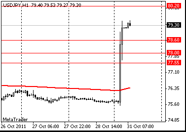 Сопротивление 2: Y79.50 (сессионный максимум)
