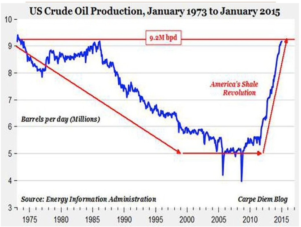 Марк Перри, аналитик Американского института предпринимательства, пишет, что добыча нефти в январе была на высшем месячном уровнем с октября 1973 года. Этот всплеск произошел даже несмотря на данные от Baker Hughes, которые указали на снижение числа буровых установок.