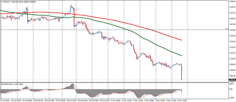 Стоимость золота существенно снизилась сегодня, достигнув минимума 7 августа, что было вызвано публикацией блестящего отчета по рынку труда США, который увеличил вероятность повышения ставок ФРС.