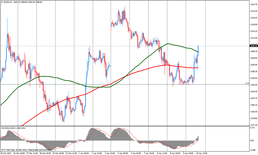 Стоимость золота значительно выросла, снова преодолев уровень $1200, что было связано с падением доходности облигаций США после публикации слабых данных.