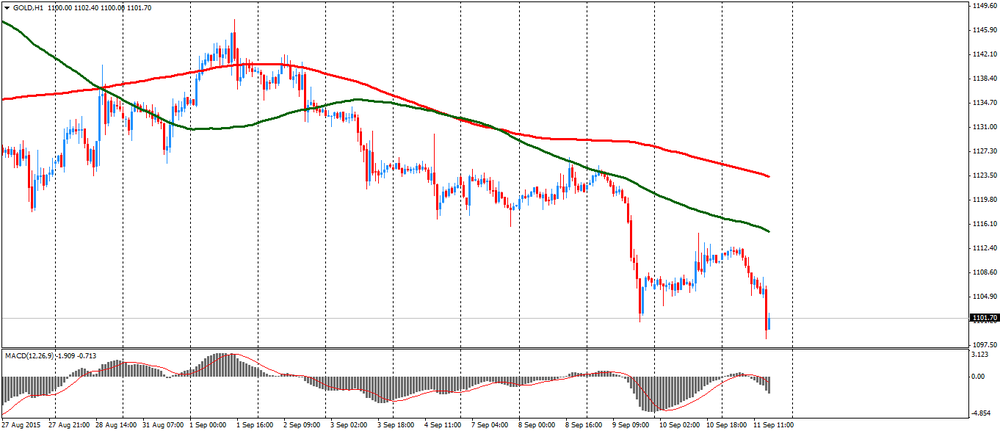 Золото значительно подешевело в пятницу, достигнув при этом месячного минимума, и направившись к своему третьему недельному спаду подряд. Давление на цены оказывает неопределенность в отношении сроков повышения процентной ставки ФРС и укрепление доллара против других валют.