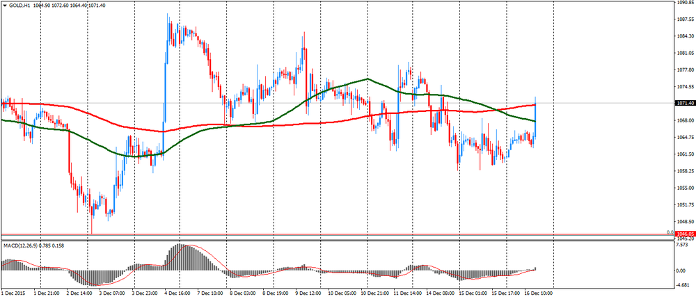 Стоимость золота заметно выросла сегодня, достигнув максимума с 14 декабря, что было вызвано коррекцией позиции в преддверии оглашения итогов заседания ФРС.