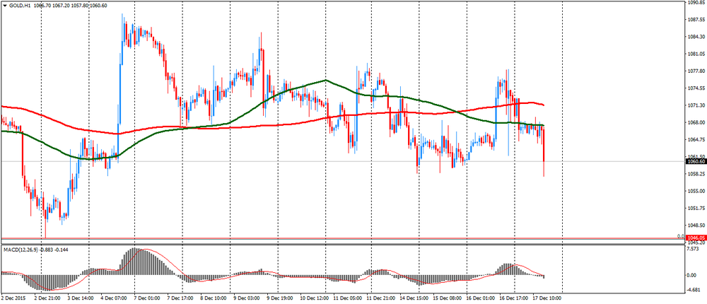Стоимость золота снизилась более чем на один процент, достигнув минимума начала декабря, что было вызвано укреплением доллара в ответ на решение ФРС.
