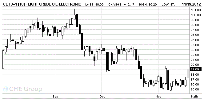 Мировые фондовые рынки и сырьевые рынки выросли сегодня, восстановив некоторых из своих резких потерь на прошлой неделе, так как появились признаки прогресса в переговорах относительно «бюджетного обрыва». Тем не менее, некоторые аналитики говорят, что на рост цен повлияла ситуация в секторе Газа.