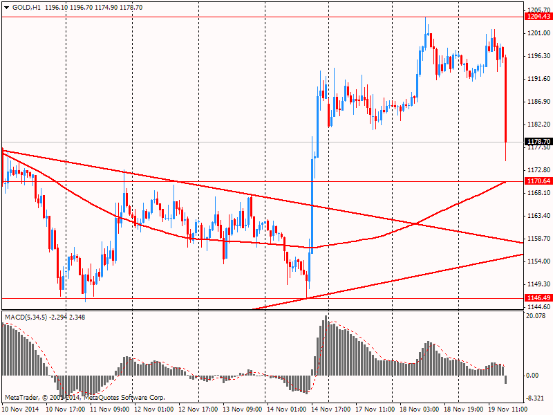 Цены на золото заметно снизились, потеряв при этом около 1.5 процента, что связано с ожиданиями публикации протокола ФРС, а также приближением швейцарского референдума по золоту, который запланирован на следующую неделю.