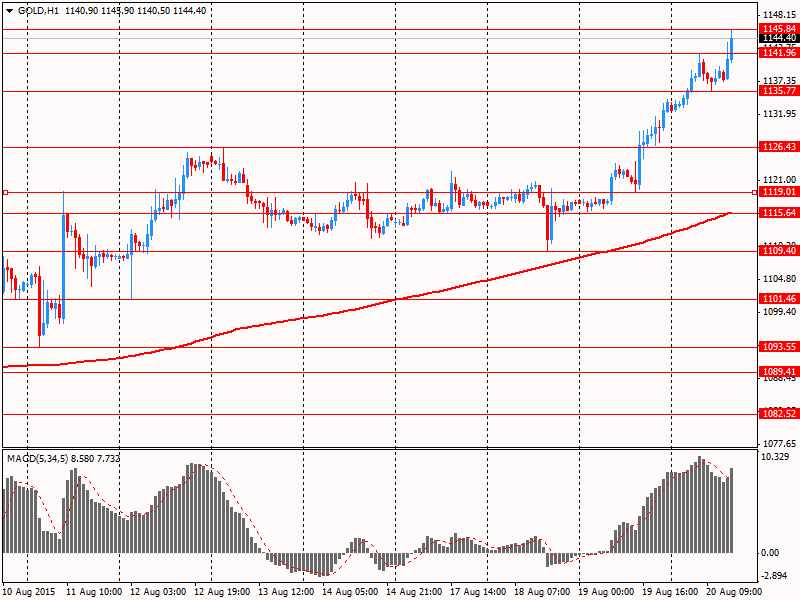 Драгметалл почти не отреагировал на отчет по обращениям за пособием по безработице в США, отразивший умеренный рост. Более того, рост цен в основном связан с уменьшением вероятности повышения ставки ФРС в сентябре после публикации протокола ФРС. Также поддержку ценам могли оказать пессимистичные комментарии других ЦБ - ЕЦБ, Банка Японии и ШНБ. На текущий момент золото торгуется на уровне $1144.40